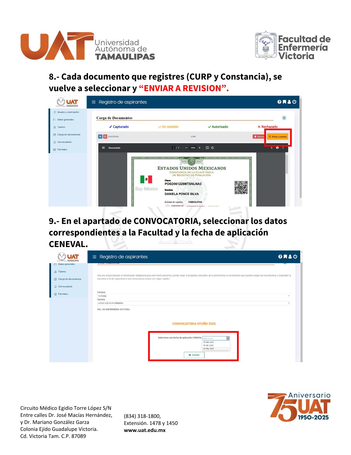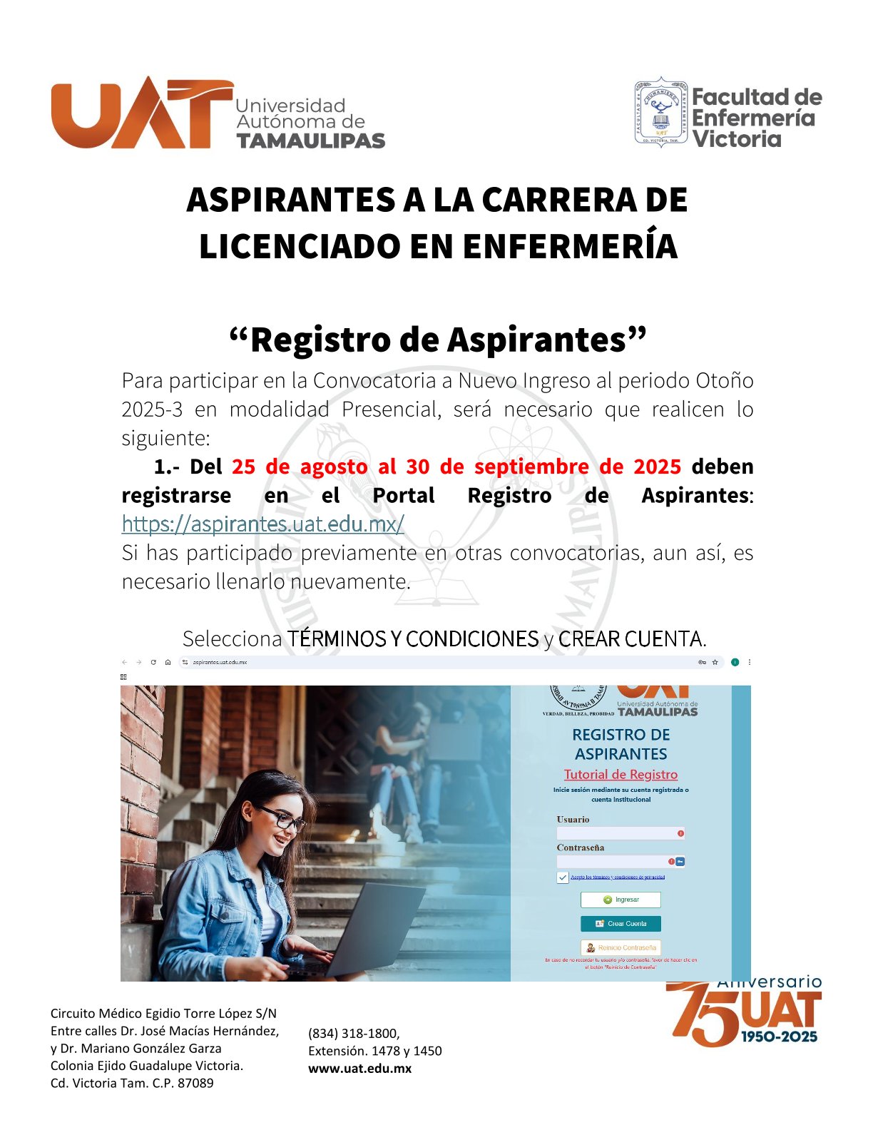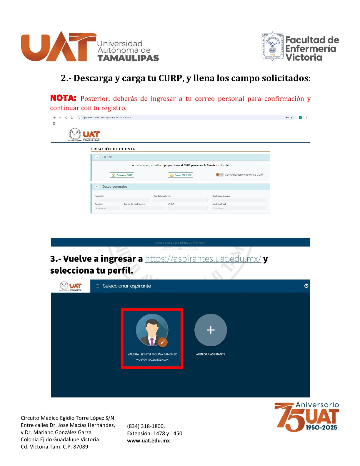 - Constancia de Registro en el Portal de Aspirantes de la Universidad (https://aspirantes.uat.edu.mx/).