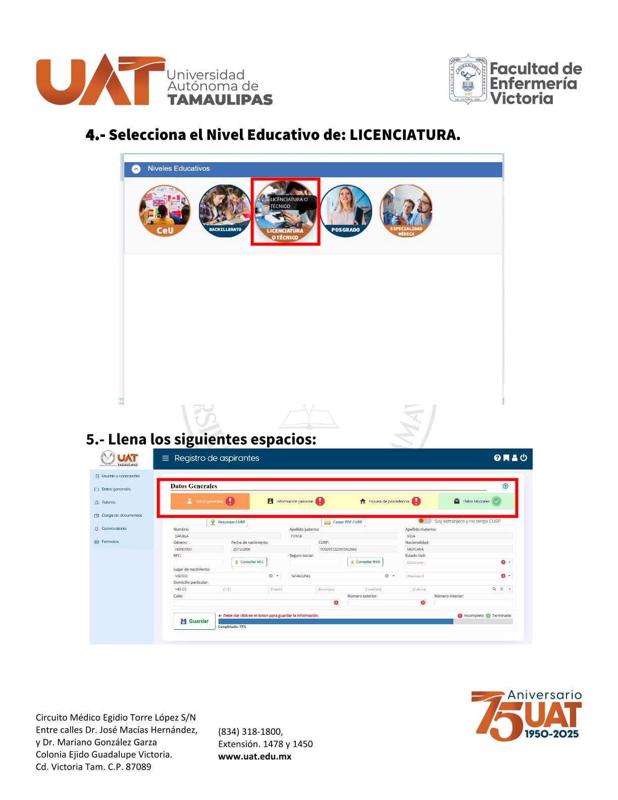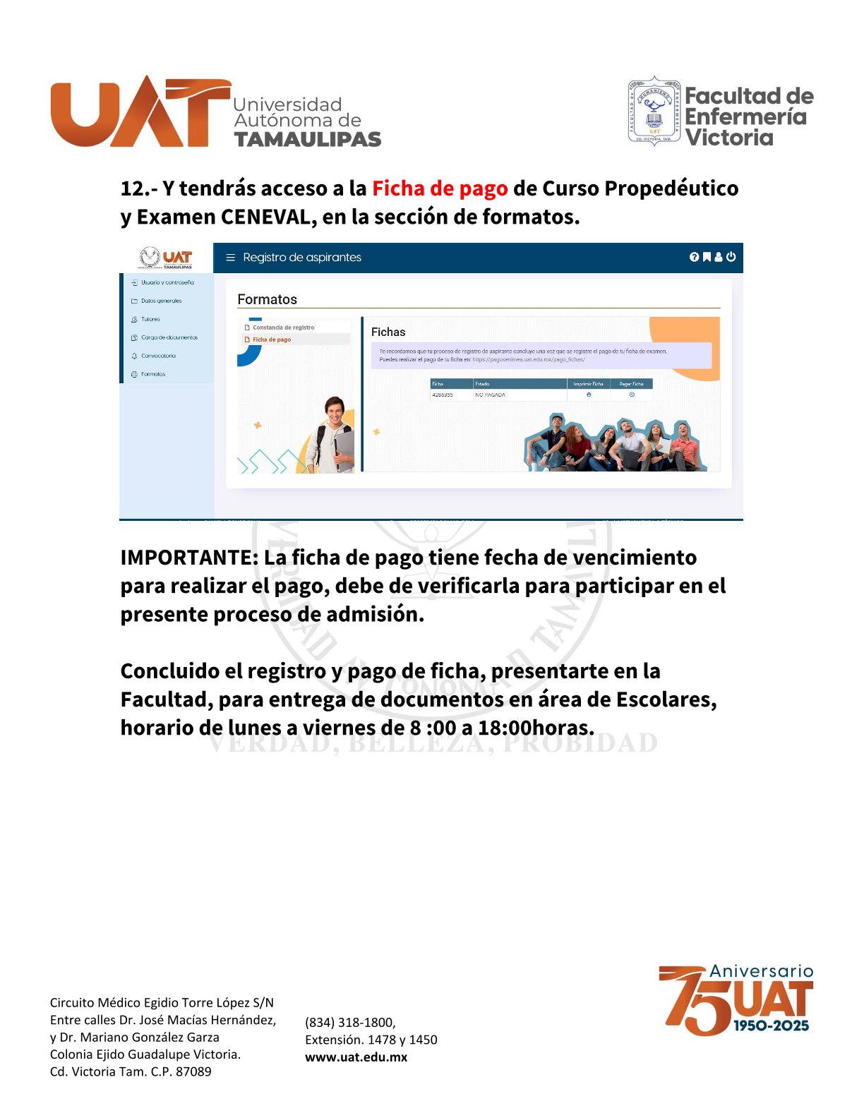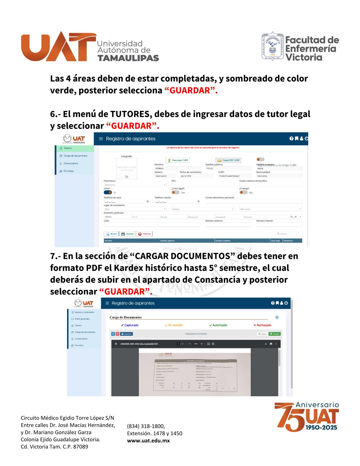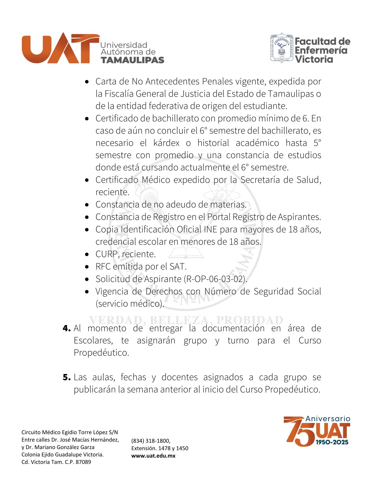 - Constancia de Registro en el Portal de Aspirantes de la Universidad (https://aspirantes.uat.edu.mx/).